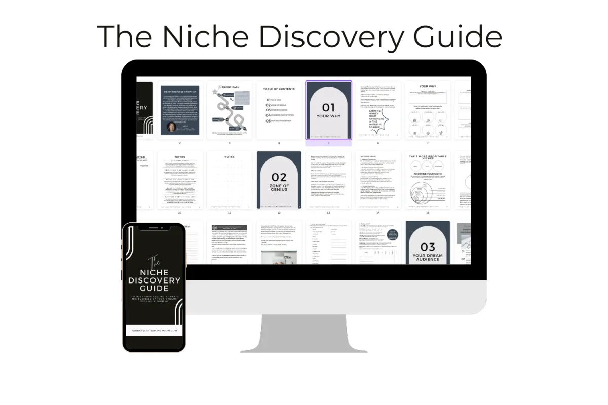 55 page Guide with workbook pages that walks through how to choose the best niche for yourself, find your dream audience, options to monetize the business and even how to do the research to make SURE it will be profitable!